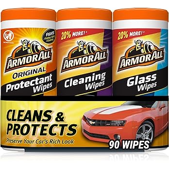 car wipesArmor All Car Wipes Multi-Pack – Interior & Exterior Cleaning Wipes Kit, Glass, Protectant & Cleaner, 3 Pack (30 Each)